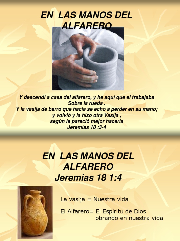 Dios Alfarero / Dios es un alfarero cuyas creaciones reflejan su personalidad y su caracter. Dios Alfarero : Cuantas veces hemos sentido que hemos fracasados, cuantas veces nos hemos dado por vencido, cuantas veces hemos dicho hasta aca noma.